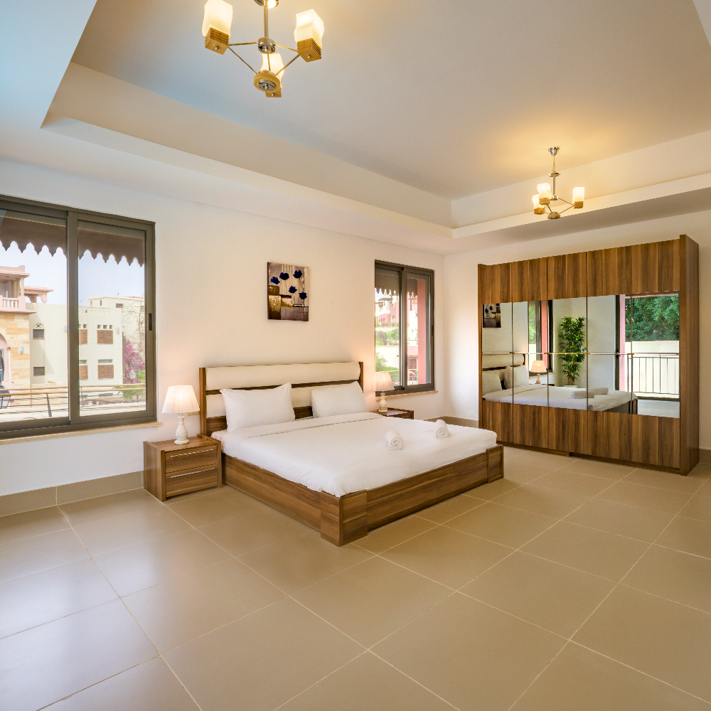 B5 is spacious and opulent escape for your friends or family, a 3.5 bedrooms’ villa with private outdoor pool and large landscape area surrounding. Located at phase III, minutes away from the Marina, shops and restaurants. The villa includes three spacious bedrooms, all featuring private ensuite bathrooms, king bedrooms and one maid room.
